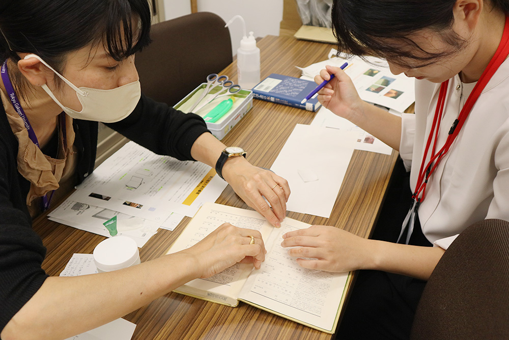 修理で使う糊や紙はその本の状態によって使い分けている。紙がしわにならないように慎重に貼るのは大変な作業であった。